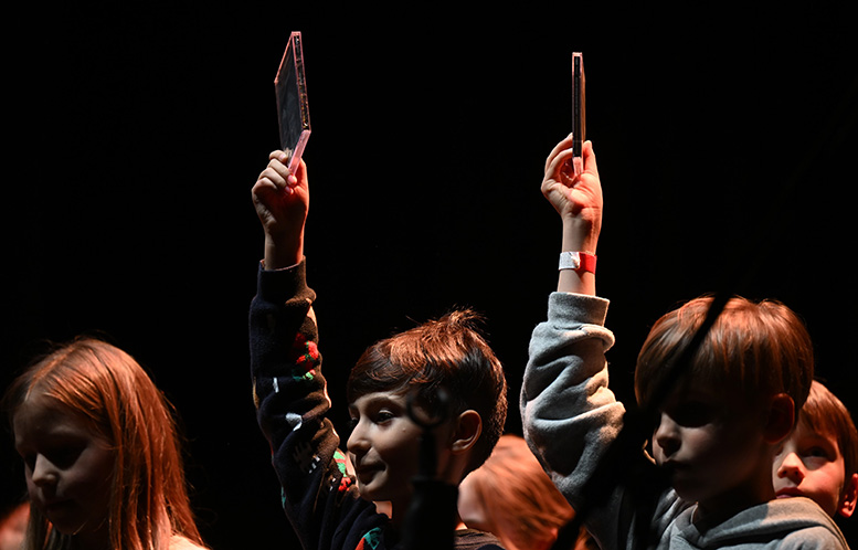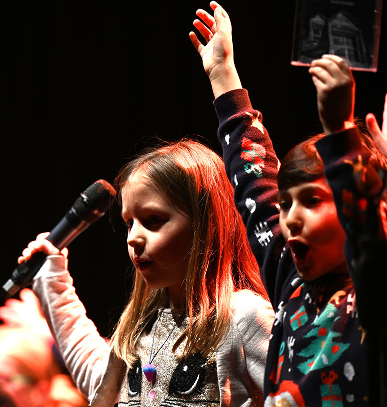 Stuttgarter Zeitung 9.12.2024: Das machte auch Peter Hömseder mit seiner musikalischen Klasse 3 der Blankensteinschule Steinheim deutlich: Schülerinnen und Schüler aus 12 Nationen, die kess und mit umwerfenden Sympahtiefaktor als “Vorglüher“ gesungene und getanzte Schulbuchgedichte zu Beginn des Konzertes aufführten und das Publikum restlos begeisterten.“