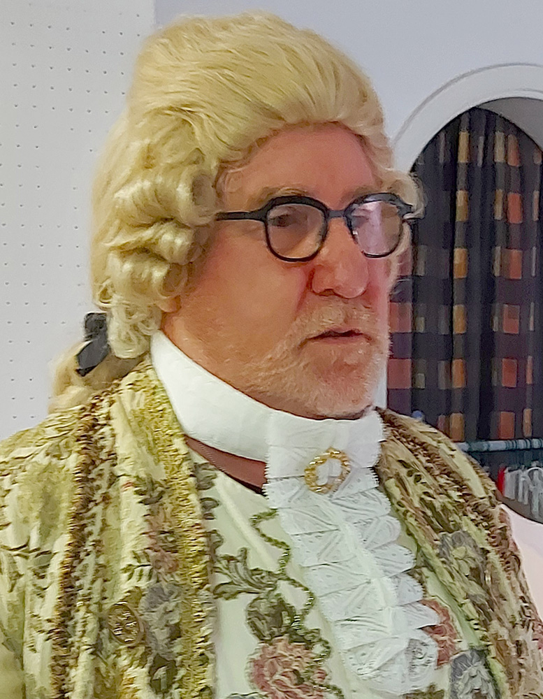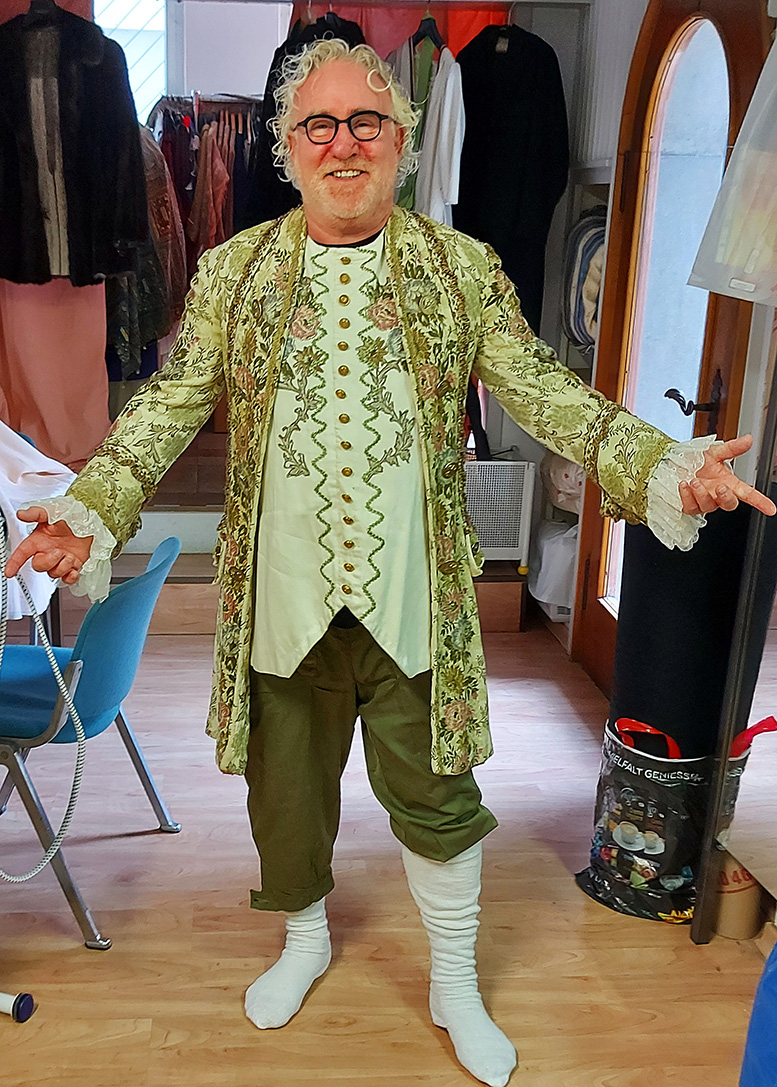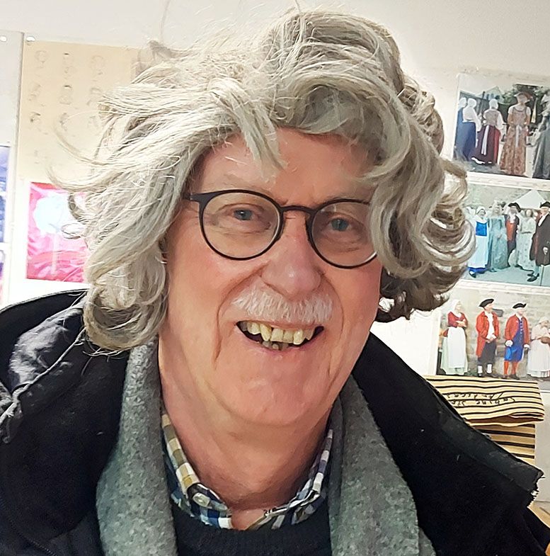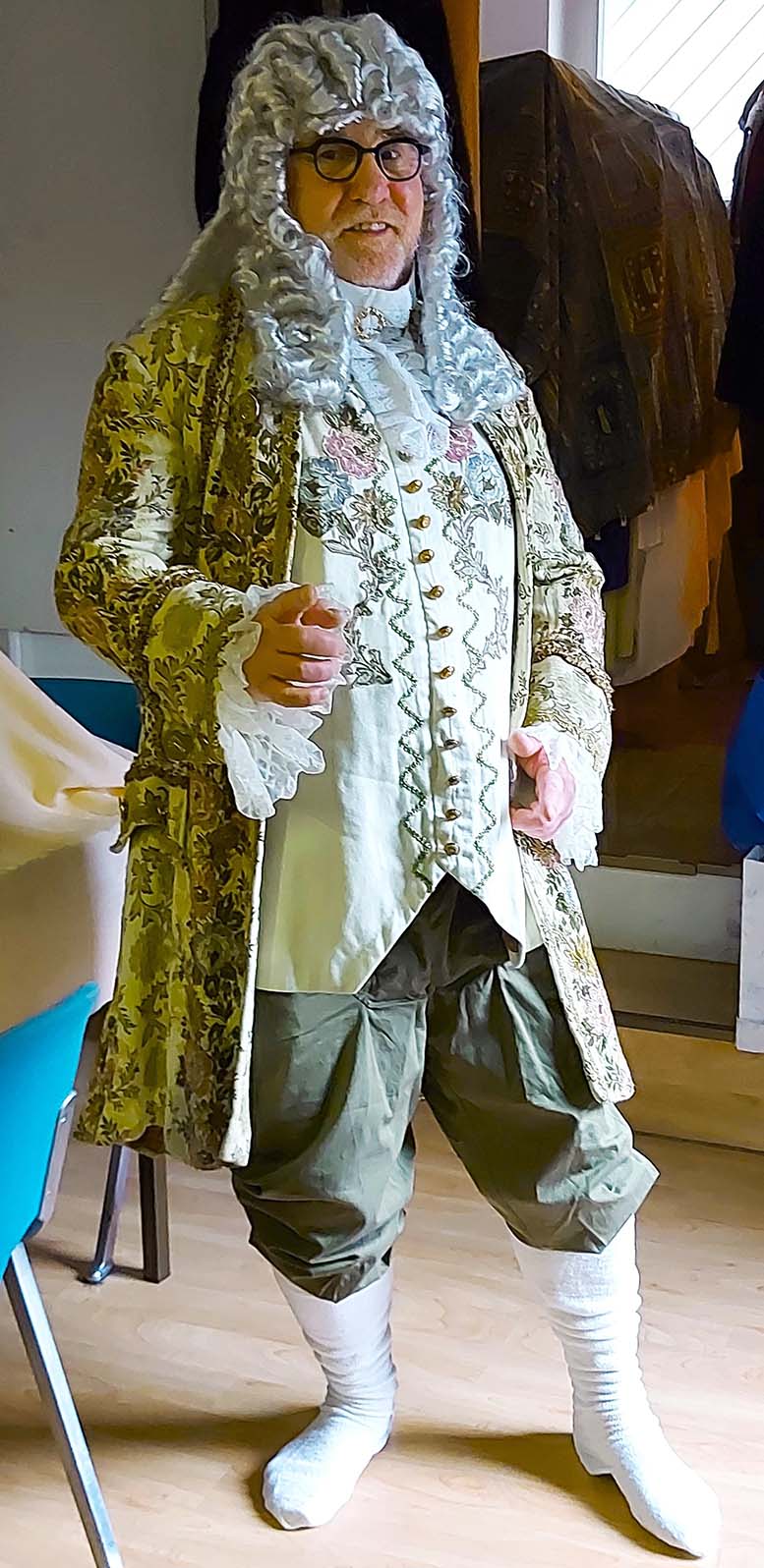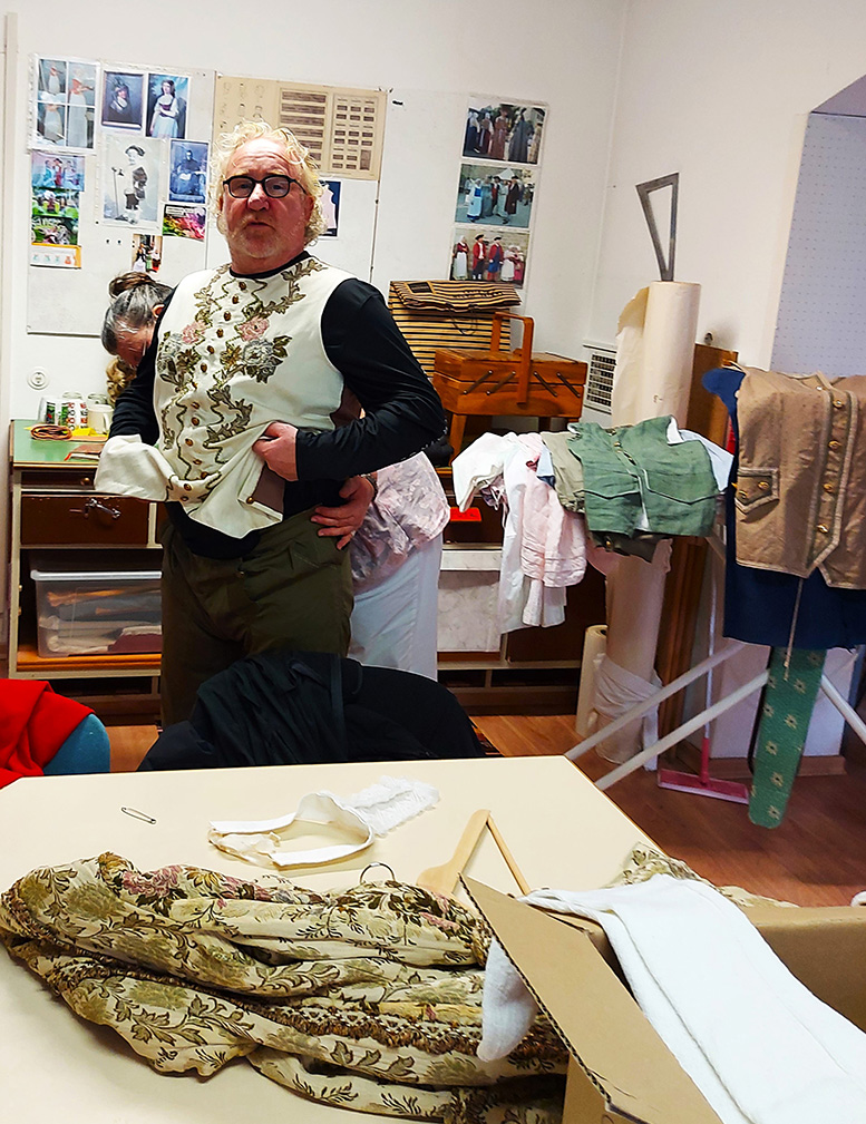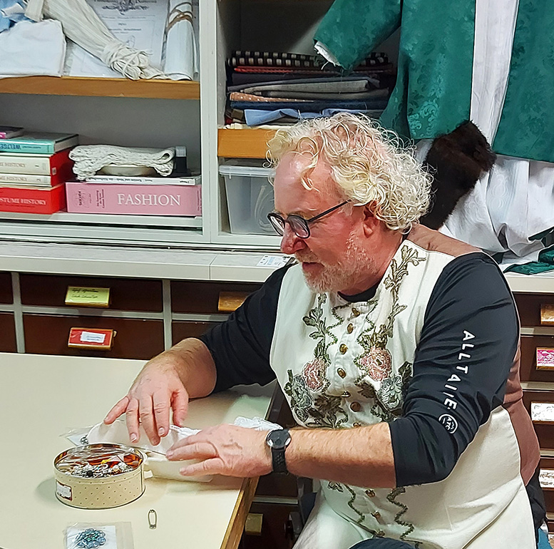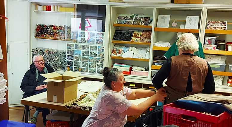 In der Nähstube zu Marbach am 28.2.2024 In der kleinen Nähstube legt Frau Pressel persönlich Hand an. Passende Knöpfe werden gesucht und das gülden Haar frisiert.
