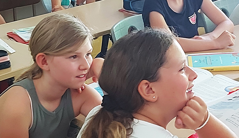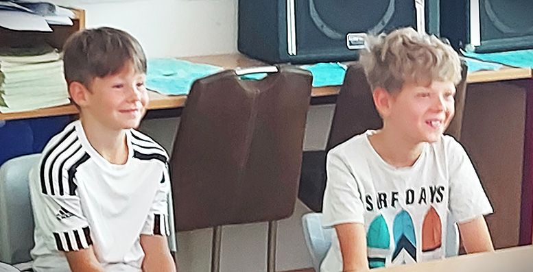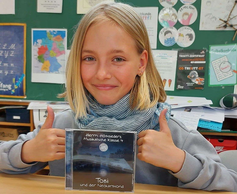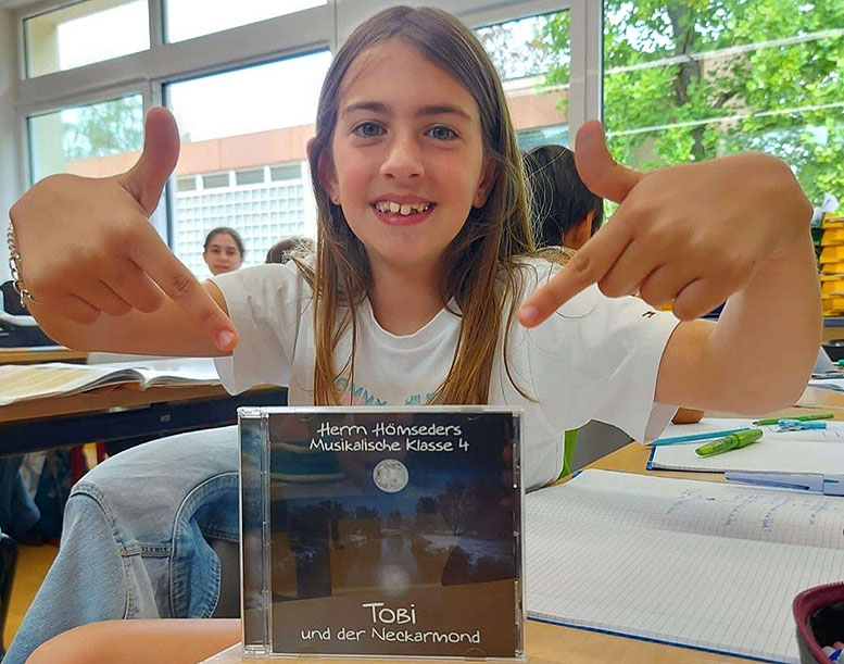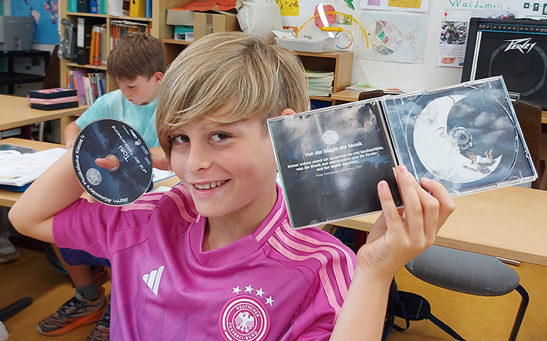 CD Präsentation im Klassenzimmer Am 20. Juni hörte die Musikalische Klasse ihre CD im Klassenzimmer zum ersten Mal. Aber auch vom ausführlichen Booklett, welches sie genau studierten. „Diese CD werde ich noch meinen Kindern vorspielen.“ Schülerin 10 Jahre.