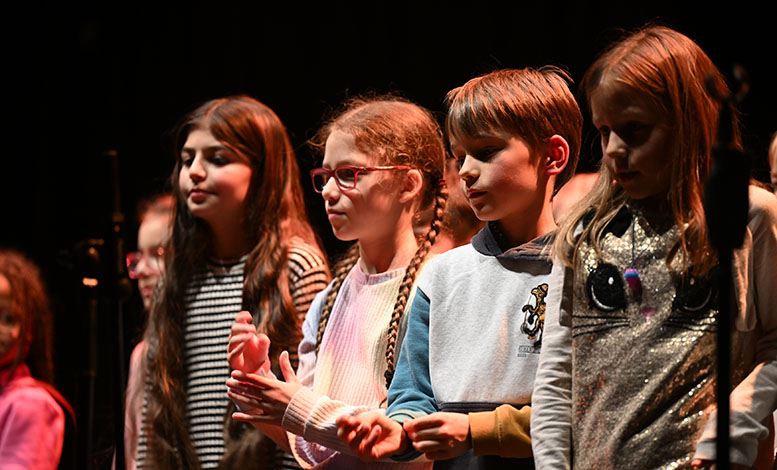 Die rund 20 Rockknirpse aus 12 verschiedenen Nationen eröffneten das Konzert mit ihren getanzten und gesungenen Schulbuchgedichten.