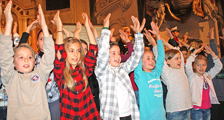 Gemeinsam sangen sie "In der Weihnachtsbäckerei" und ernteten lautstarken