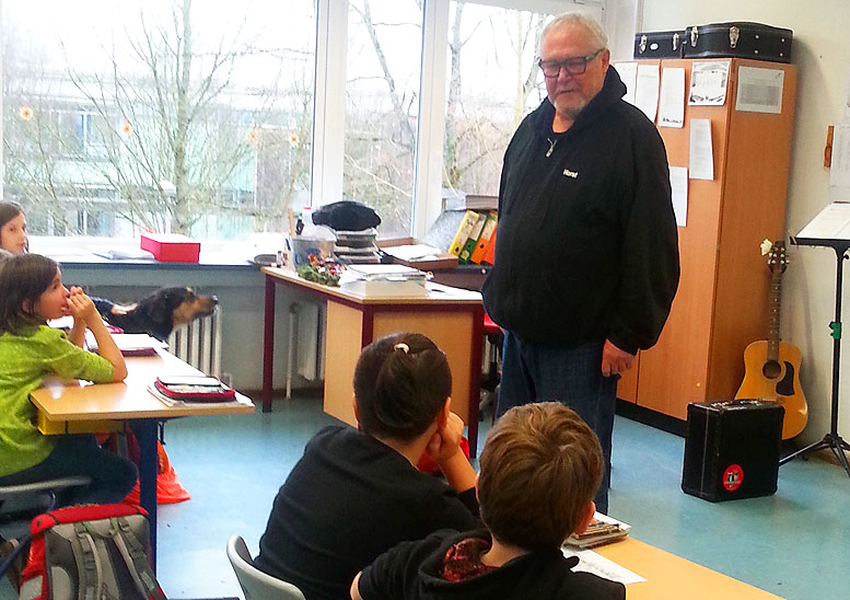 Tögel berichtete den Schülern von der aktuellen Tournee der Band durch Ecuador.