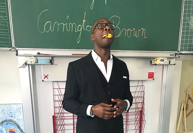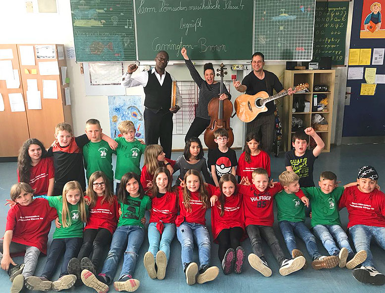 Vor zehn Jahren in Berlin heimisch geworden, sind Carringto/Brown gelegentlich auch im Ländle zu Gast, etwa bei den Ludwigsburger Schlossfestspielen oder im Stuttgarter Renitenztheater. Während eines Gastspiels bei den Schlossfestspielen 2016 lernten sie Herrn Hömseders musikalische Klasse4 kennen. Diese Begegnung sollte reiche Früchte tragen: Gemeinsam nahm man im Studio die CD "Das schwimmende Klassenzimmer" auf, eine musikalische Weltreise auf dem Schiff, und es kam zu einem Auftritt im Programm der Schlossfestspiele.