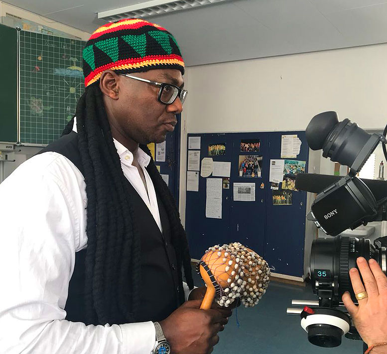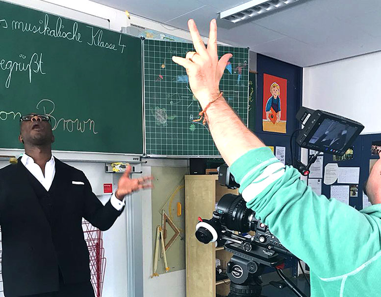 Drei Lieder werden an diesem Tag auf Video aufgenommen - das Peter Hömseder geschriebene "Komm', liebe Schule", außerdem die von ihm vertonten Gedichte "Das Wiegenlied vom Ozean" von Klaus-Peter Lieckfeld und "Hoffnung" von Karl Wenness. Zu "Komm' liebe Schule" im Reggae-Stil setzt sich Brown eine bunte Mütze samt Rastalocken auf den Kopf, beim "Wiegenlied vom Ozean" trägt einer der Schüler ein Piratenkopftuch, ein Mädchen ein Matrosenkleid, und man hört und sieht den Wind und die Wellen förmlich rauschen. "Hoffnung" dagegen ist ein getragenes, meditatives Lied. "Die Bewegungen haben die Kinder selber entwickelt und ganz demokratisch darüber entschieden, was am besten zum Text passt", sagt Peter Hömseder mit berechtigtem Stolz auf seine Schüler.