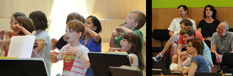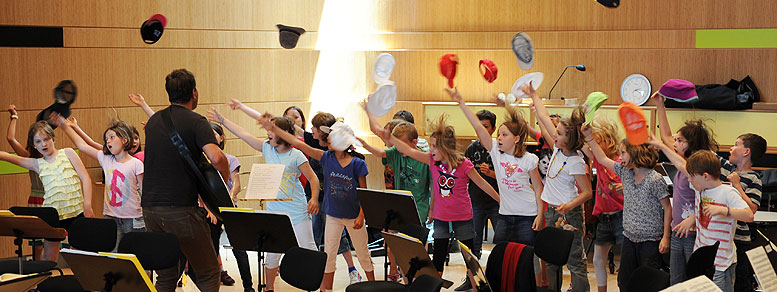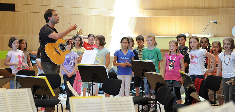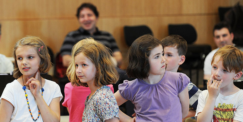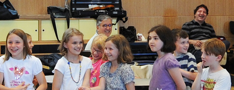 Die 28 Kinder durften ganz nah am Orchester sitzen und konnten somit die Profimusiker genau beobachten und noch besser hören. Die Schüler genossen das fantastische Spiel Says und die glänzende Begleitung des Orchesters. Offene Münder und leuchtende Augen waren die Folge.