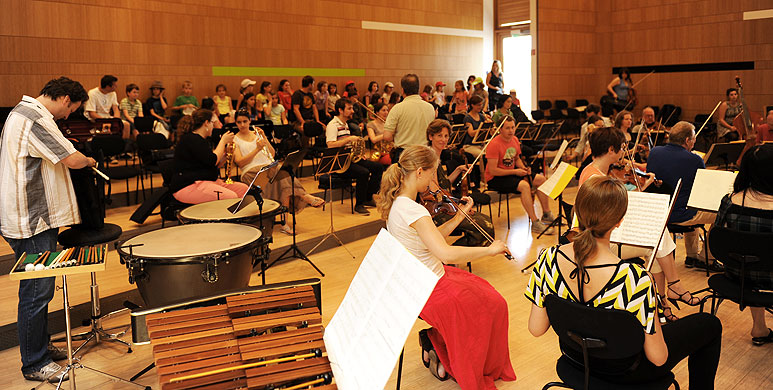 Herrn Hömseders musikalische Klasse 3 trifft bei Orchesterprobe
