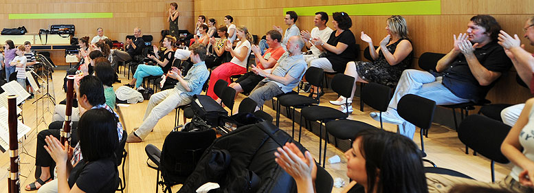 Lautstarker Applaus der Profimusiker brandete auf die jungen Künstler nieder. Als die Schüler die Orchestermusiker zum Mitsingen ihres Wasserliedes aufforderten, bebte die Domsingschule und das renommierte Orchester hatte sichtlich Spaß an dem Grundschulsong. Nach ihrem eigenen Auftritt waren die Schüler sichtlich mit Stolz erfüllt.