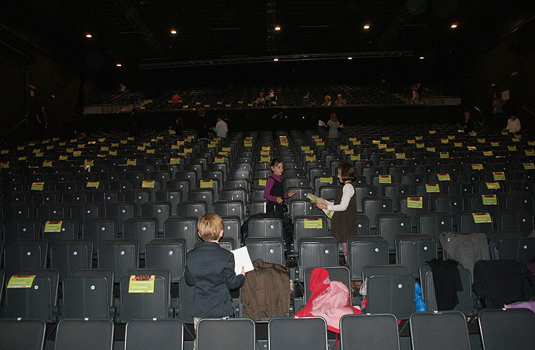 Exklusiv durften die Schüler das Theaterhaus schon um 19.00 Uhr betreten um Flyer auf die Sitzplätze