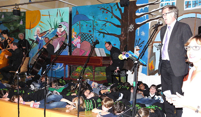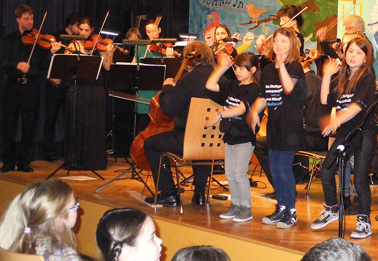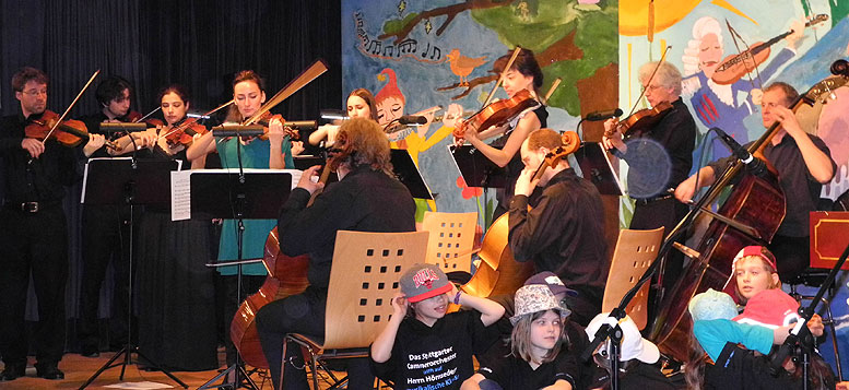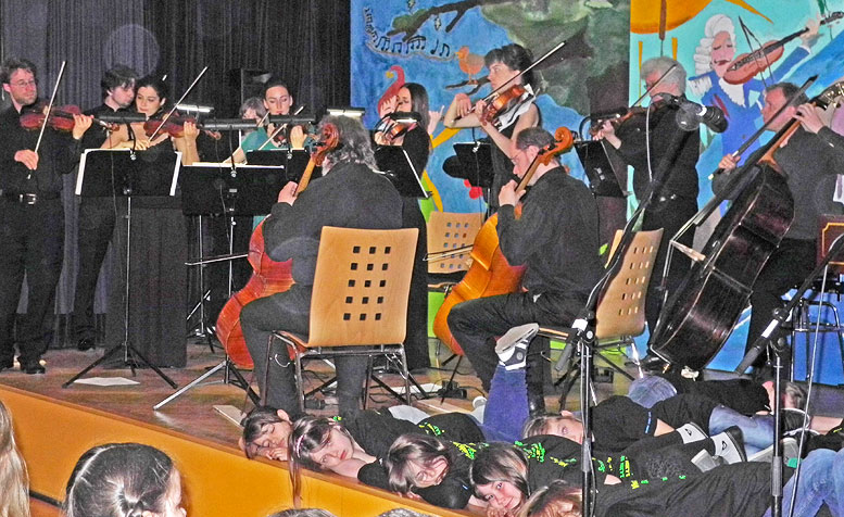 Ziel war es nicht nur die großen Hallen zu bespielen sondern das Konzert auch direkt an einer Schule aufzuführen um Schülern ein klassisches Konzert hautnah zu präsentieren. Dazu wurde die altehrwürdige und denkmalgeschützte Mörikeschule in Backnang ausgewählt. Orchesterwarte und Neuntklässler schleppten gemeinsam das Cembalo, über drei Stockwerke nach oben, in die Musikaula. Es hat sich gelohnt. Die Schüler erlebten ein einmaliges Konzerterlebnis mit einem weltberühmten Orchester, das in Kürze auf eine große Asientournee geht und einer rockenden, vierten Grundschulklasse die sich bald in alle Winde auflöst... Konzert in der Mörikeschule Backnang am 4.4.2014 (Backnanger Zeitung)