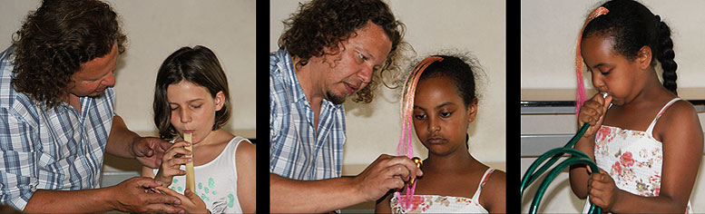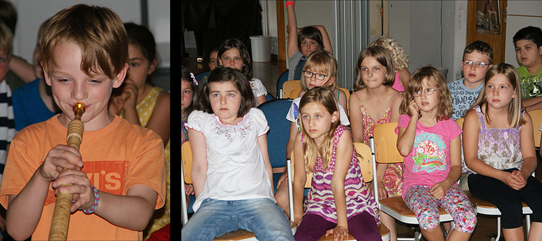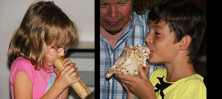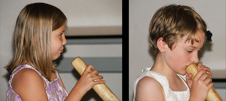 So erfuhren die Kinder z.B., dass das Didgeridoo eine Holztrompete der australischen Ureinwohner (Aborigines) ist und es aus einem von Termiten ausgehöhlten Eukalyptusast ohne separates Mundstück besteht.
