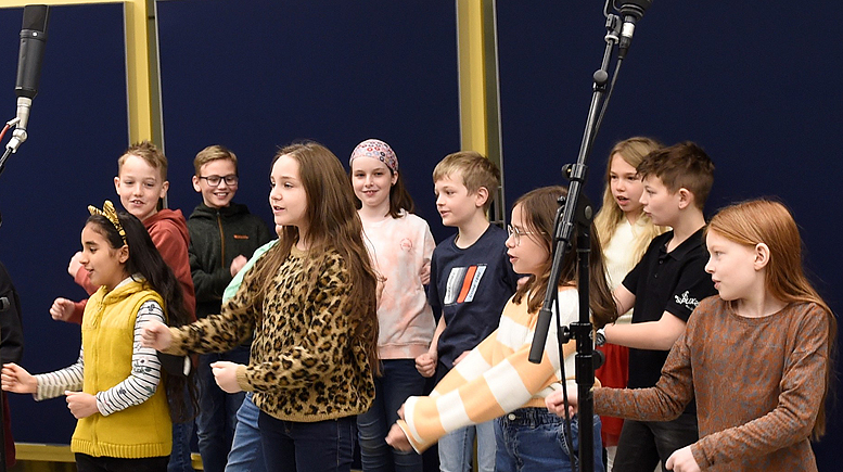 Tag 2 in den legendären Bauer Studios Am Montag den 4.4.2022 war Herrn Hömseders musikalische Klasse 4 wieder in den Bauer Studios. Das Warmsingen (Hüpfen) wurde begeistert gefeiert. Es wurden Korrekturen an den Liedern vorgenommen und an Nuancen gefeilt. Die Schüler/innen hatten zum wiederholten Male viel Spaß und Freude beim Singen ihrer Songs |